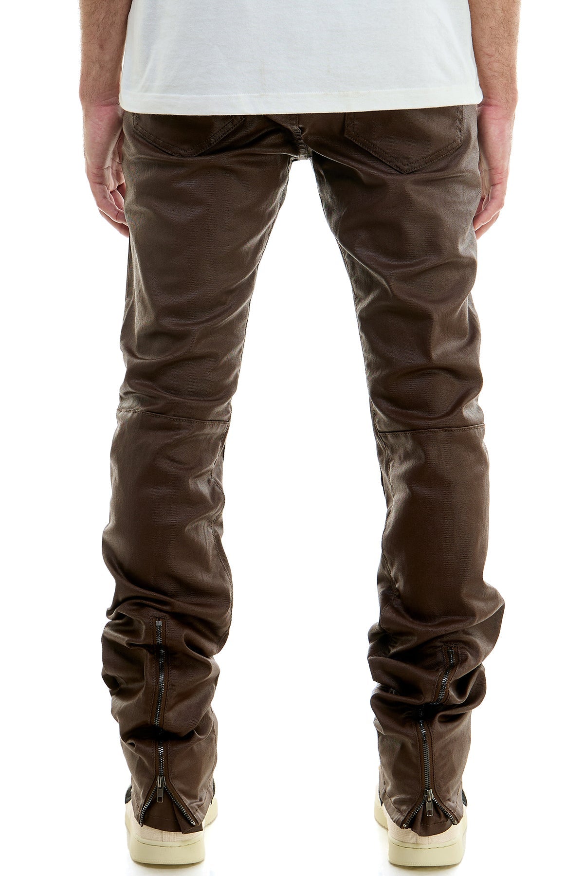 Long zippers in back of bottom parts of pants w/ *backing inside